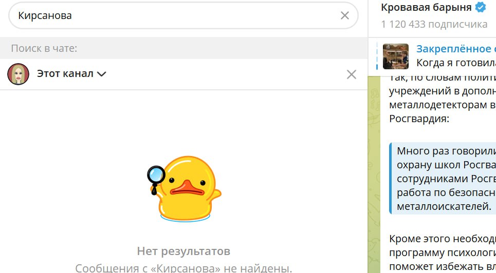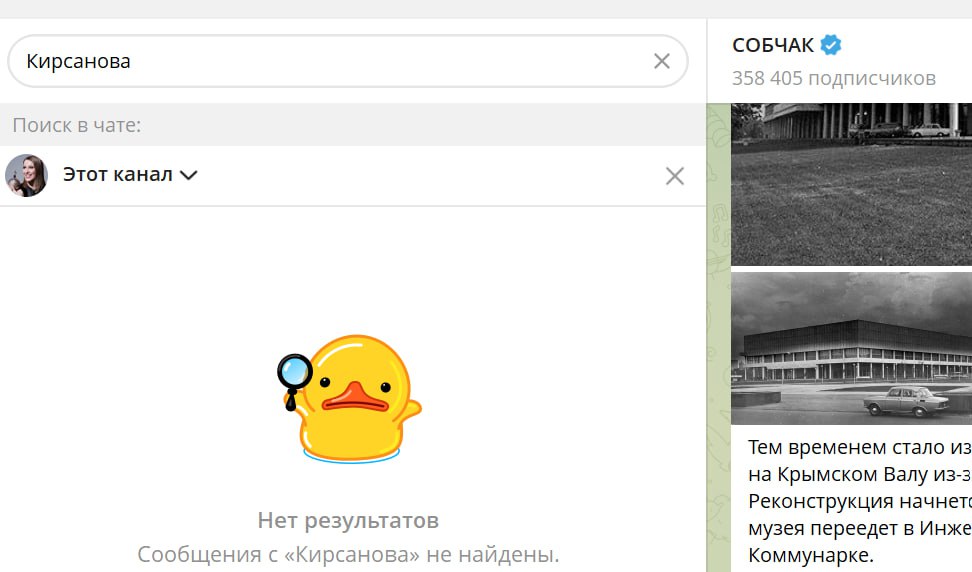 21 октября 2024 года стало известно, что предыдущим вечером 39-летний мужчина забил до смерти 78-летнюю Раису Кирсанову, доктора искусствоведения, ведущего российского специалиста по театральному костюму. И что нам дает поиск по «Осторожно, новости»? Ничего. Нет такой новости, хотя тут не просто насилие, а убийство известного человека. Может, что-то есть в «Кровавой барыне»? Ведь Ксения Анатольевна — поборница прав женщин, у неё даже феминитивы в СМИ используются, а тут мужчина забил до смерти пожилую даму, учёную. Должно быть! Но тоже ничего нет. Наверное, в канале «Собчак» есть! Черт, тоже ни слова, хотя насилие по отношению к женщинам — это буквально новостной лейтмотив холдинга наравне с преступлениями, которые совершают ветераны СВО на гражданке (тут собчаковские миньоны притягивают за уши всё, что притягивается и не притягивается, определяя «СВОшников» по цвету одежды и предположениям в соцсетях).