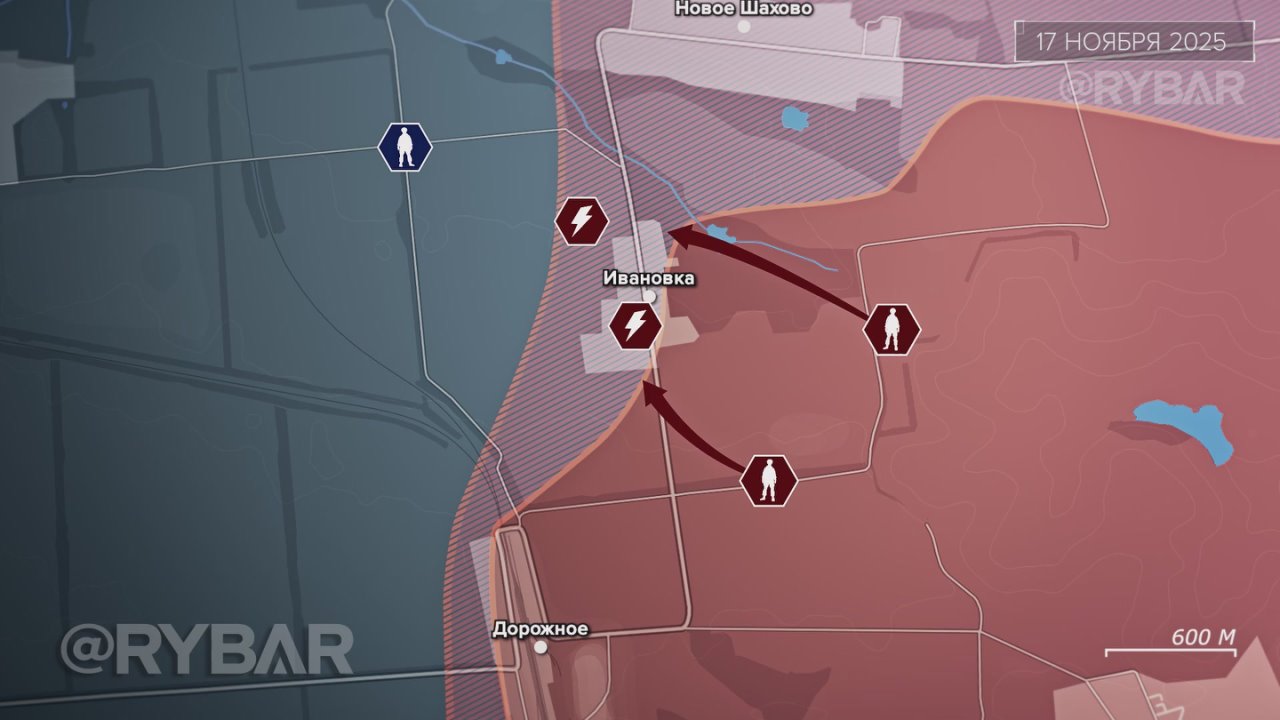 Как развивались бои?К 23 ноября штурмовики заняли центр Родинского, а также отбросили украинские формирования из Суворово, ликвидировав вклинение ВСУ на этом участке.
