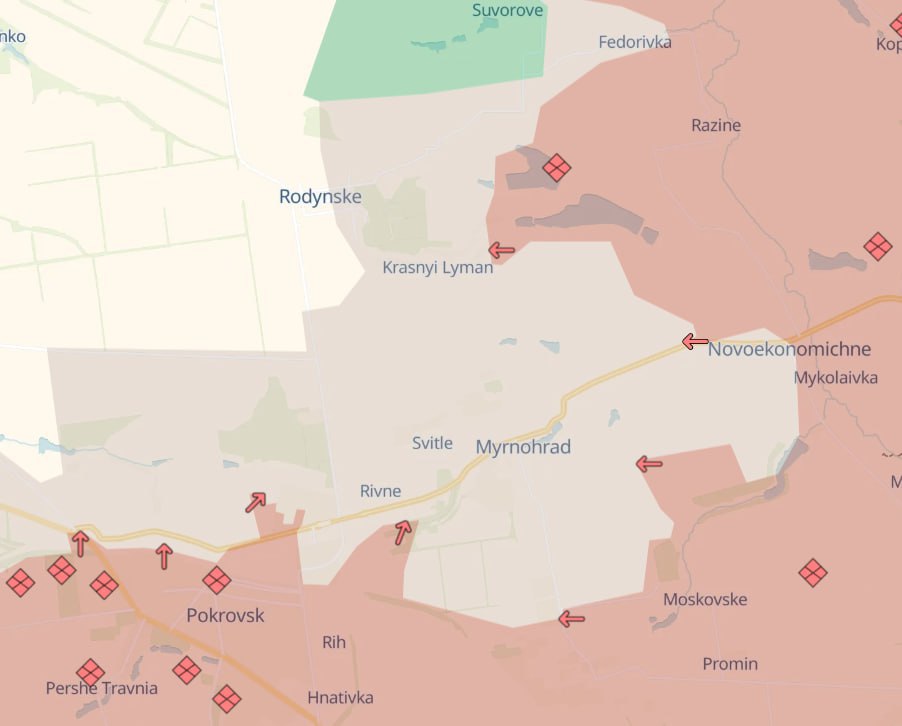 Ситуация с каждым часом ухудшается, противник установил контроль над н.п. Светлое, расположенным на северо-западном фланге Мирнограда. На кадрах визуального контроля отчетливо видно демонстрацию русского триколора, а также проведение стабилизационных мероприятий. Фактически, враг там закрепился и начал обустраиваться.Параллельно фиксируется активность противника уже на западном фланге самого Мирнограда. Там проводится задача: зачистить территорию, установить контроль и подтянуть тыл. Дополнительно наблюдалась эвакуация местных жителей в этом же секторе.